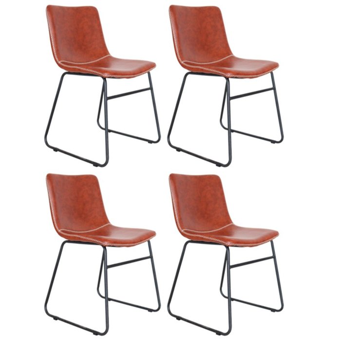 Kit 4 Cadeiras Oxford com Assento em Couro Ecológico e Base em Aço Fratini Conhaque