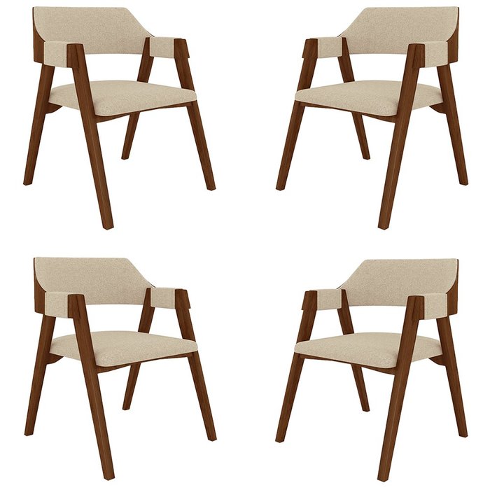 Kit 4 Cadeiras Sala de Jantar e Jogos Carteados Madeira Maciça Poker Linho Offwhite/imbuia G42 - Gra