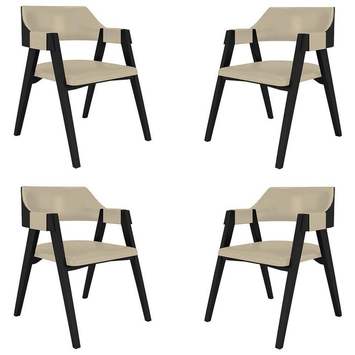 Kit 4 Cadeiras Sala De Jantar E Jogos Carteados Madeira Maciça Poker Pu Bege/preto G42 - Gran Belo