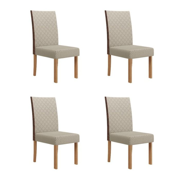 Kit 4 Cadeiras Semplice Linho Encosto Courino Helo