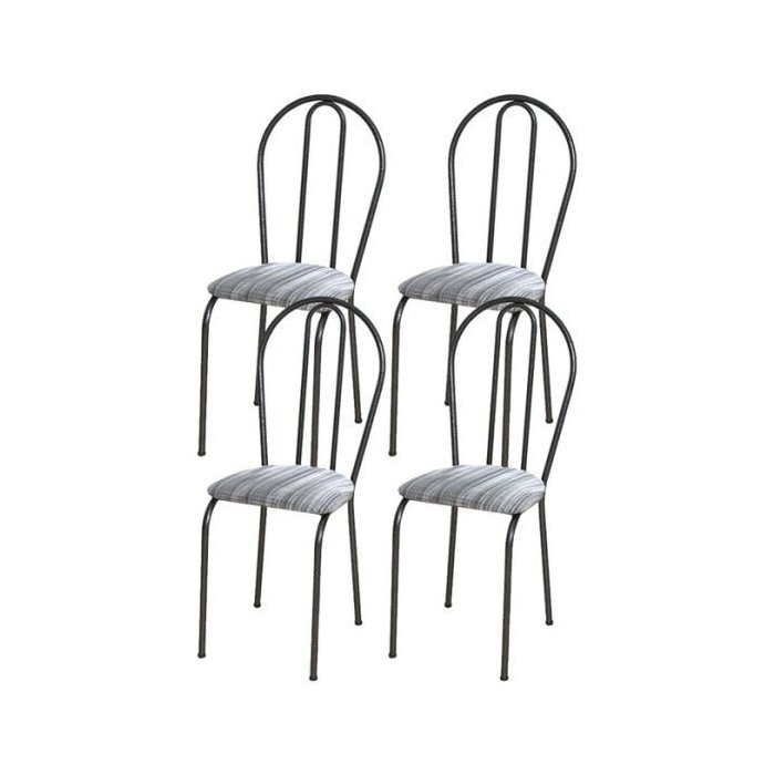 Kit 4 Cadeiras Tubular Cromo Preto 004 Assento Linho Linho