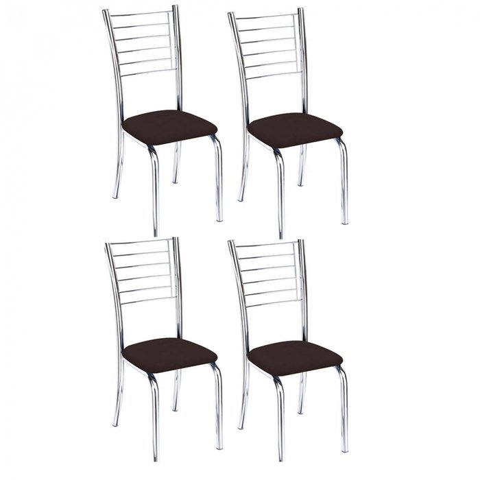Kit 4 Cadeiras Vanessa Cromada para Cozinha-Assento Corino Marrom-Gat Magazine