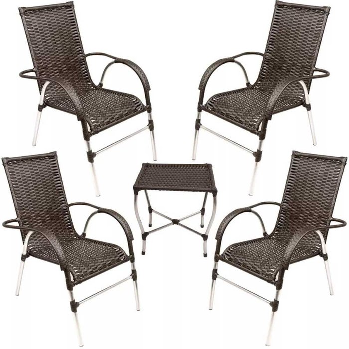 Kit 4 Cadeiras Vênus E Mesa De Centro Garden Pedra Ferro
