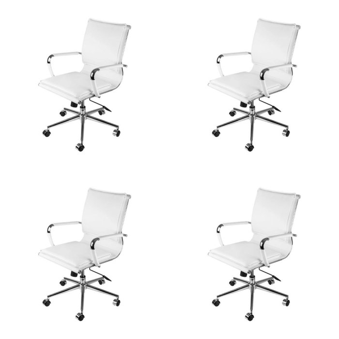Kit 4 Cadeirsa Para Escritorio Diretor Italiano Estofada Em Corino 3304 Branco