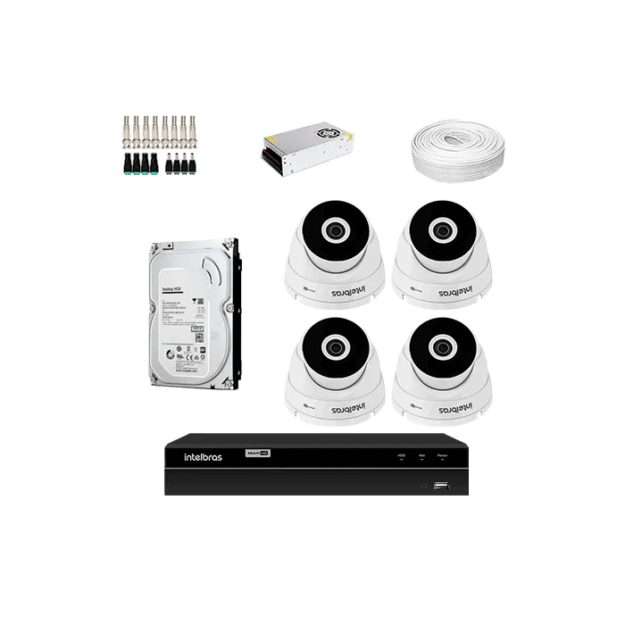 KIT 4 Câmeras Intelbras Vhd 3120 D G6 + DVR Intelbras 4 Canais HD + HD (Disco Rígido) + Acessórios
