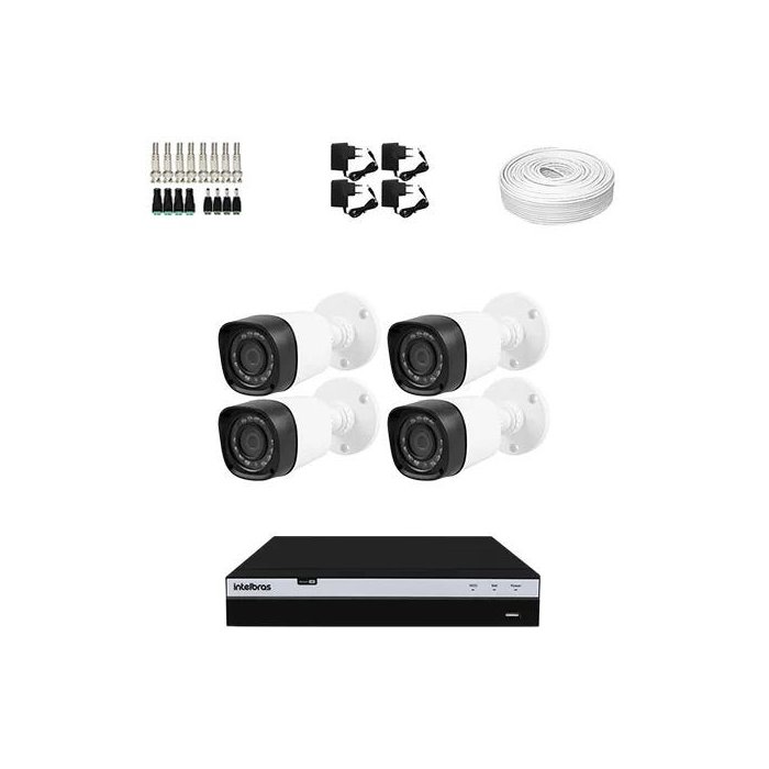 KIT 4 Câmeras Infra 1080p + DVR Intelbras 4 Canais Full HD + Acessórios