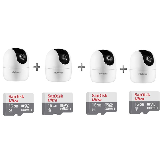 Kit 4 Câmeras Ip 360° Im4 Mibo Fhd Intelbras + Sd 16gb Ultra