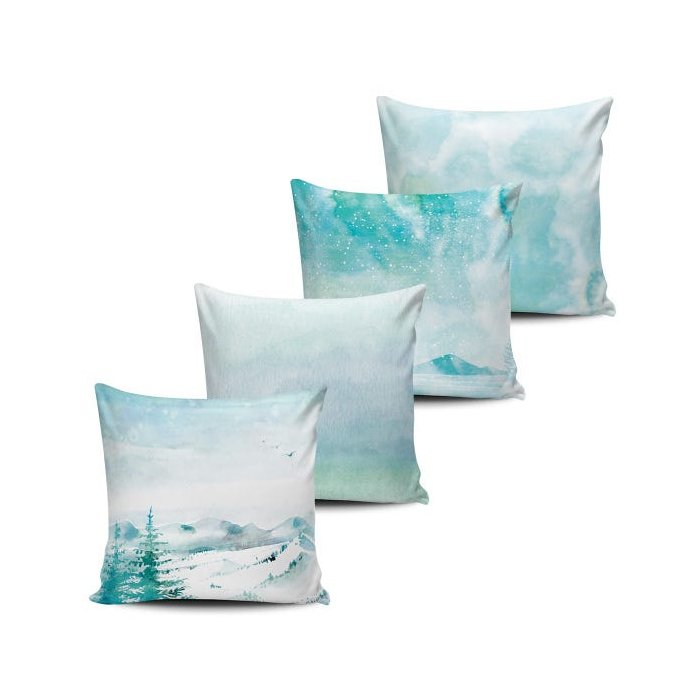 Kit 4 Capas Almofadas Pinturas Paisagens Neve 45x45cm