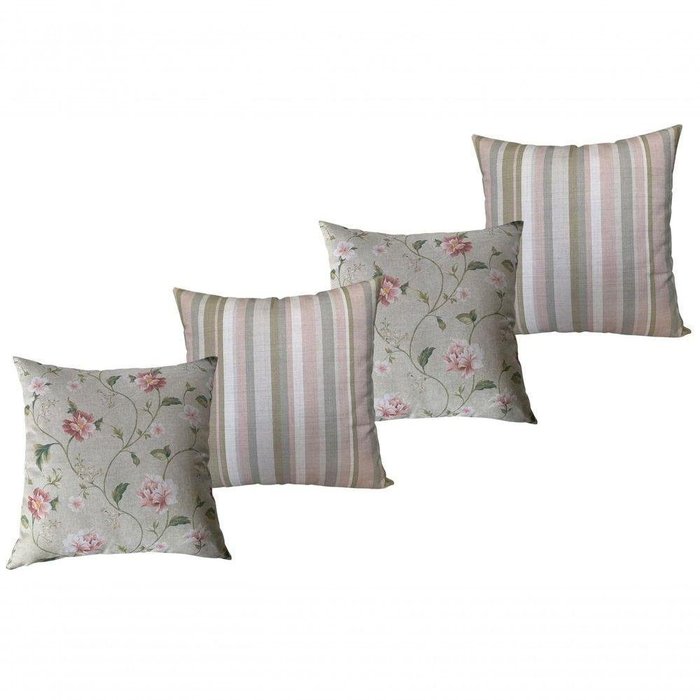 Kit 4 Capas De Almofada Impressão Digital Zíper Invisível estampada - floral romântica e listrada