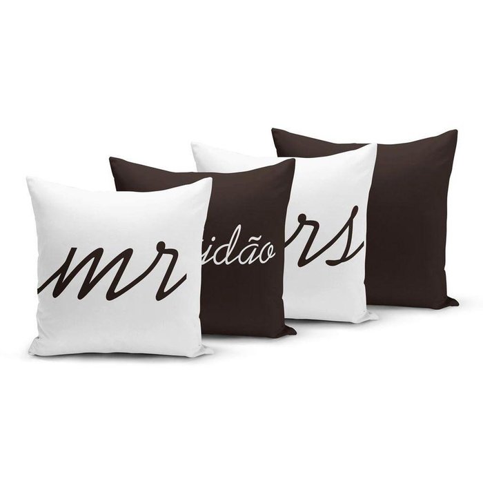 - 1x Kit 4 Capas de Almofadas 45x45cm Mr & Mrs Gratidão -