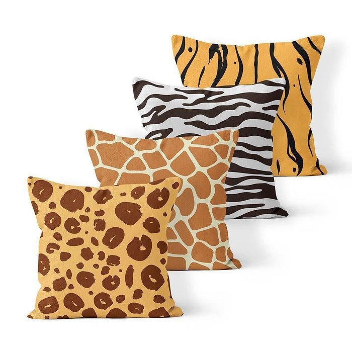 Kit 4 Capas De Almofadas Decorativas Own Animal Print Onça Girafa Zebra E Tigre - 45x45 Cm Tecido Confortável