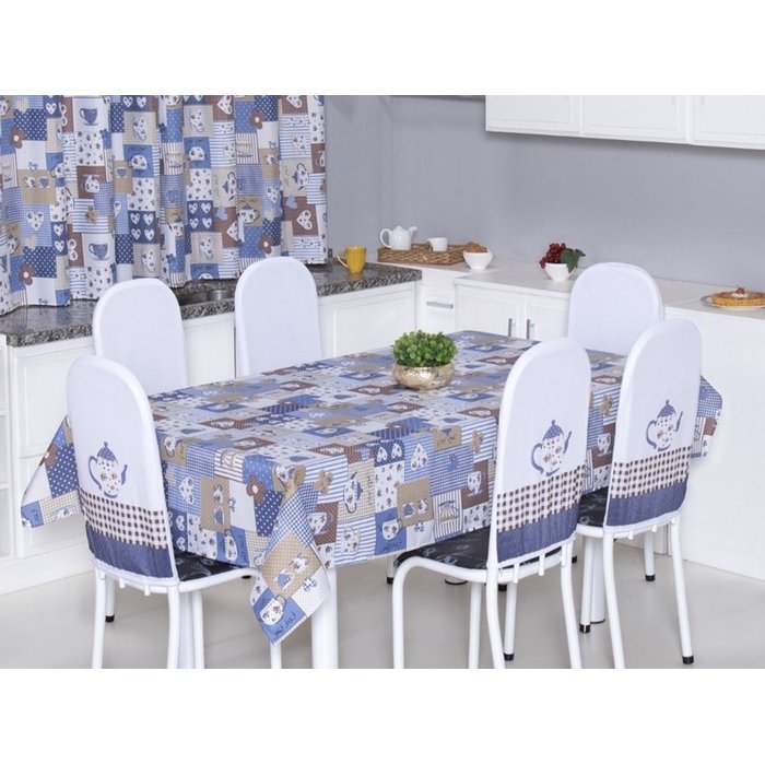 Kit 4 Capas Encosto de Cadeira de Aço Tubular Cozinha Malha Gel Estampa Divertida Bule Azul