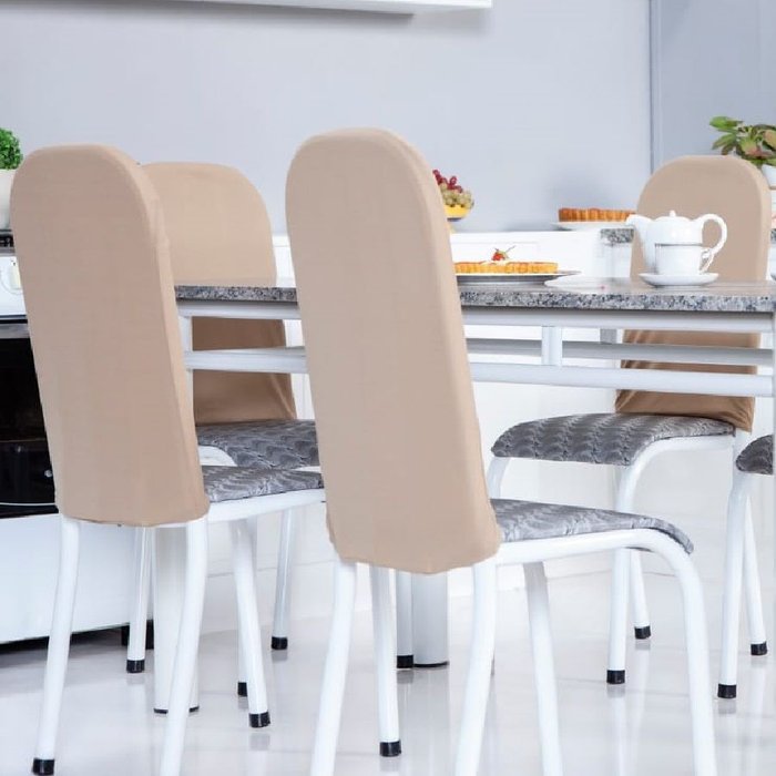 Kit 4 Capas Encosto de Cadeira de Ferro Tubular Cozinha e Jantar Malha Helanca Elástica:avelã Bege Avelã Bege