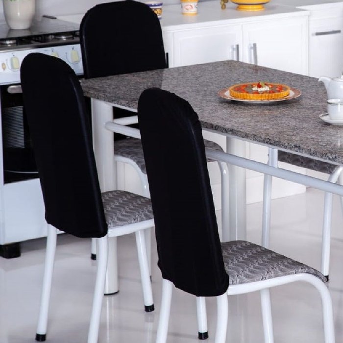 Kit 4 Capas Encosto de Cadeira de Ferro Tubular Cozinha e Jantar Malha Helanca Elástica:preta Preta