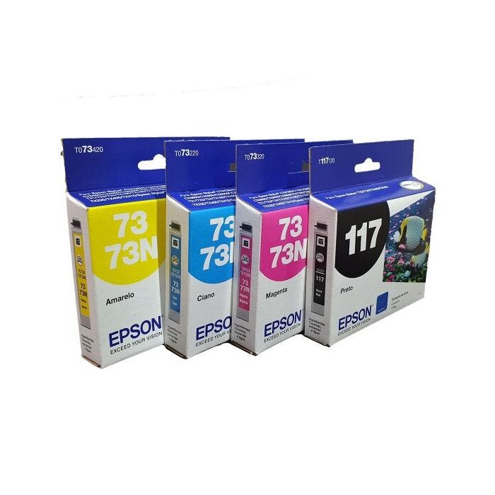 Cartuchos Epson possibilitam impressäes duradouras Kit com 4 Cartuchos Epson 1 T117 e 3 To73