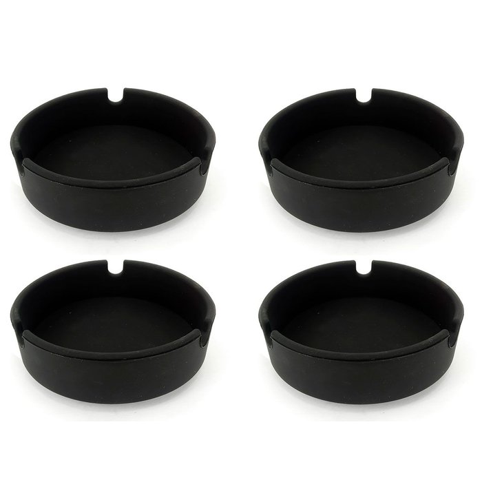Kit 4 Cinzeiro de Silicone Redondo Resistente Lavável Não Queima e Não Quebra Cor: Preto