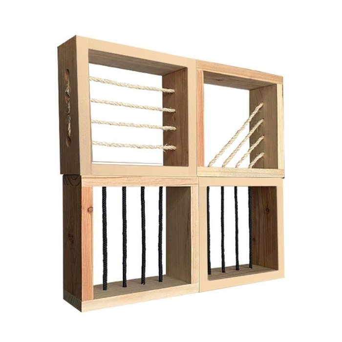Kit 4 Cobogós Paris Madeira Maciça - Borda Natural Elemento Vazado Sisal - Marrom