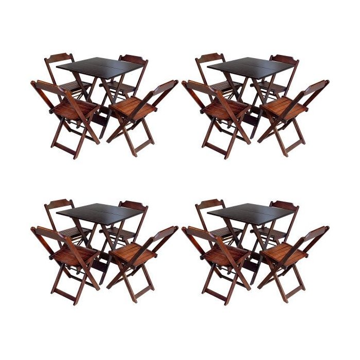 Kit 4 Conjuntos de Mesa com 4 Cadeiras de Madeira Dobravel 70x70 Imbuia