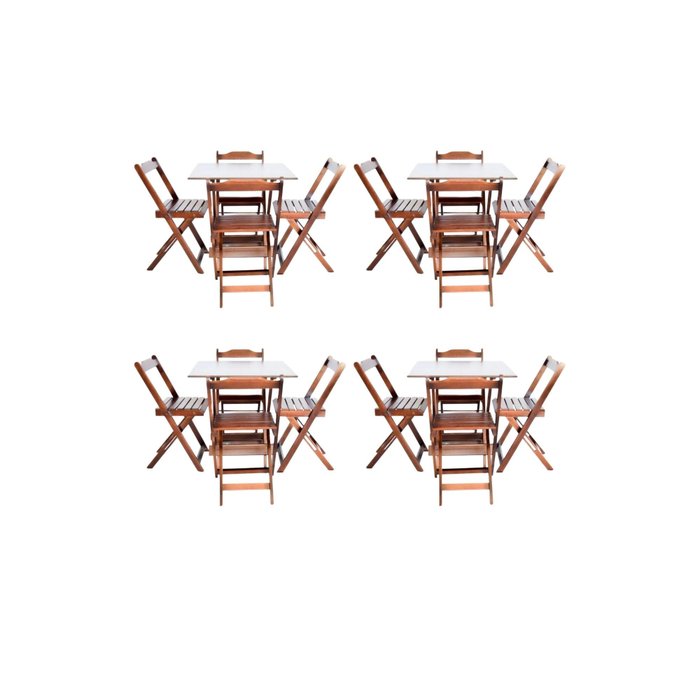 Kit 4 Conjuntos Mesas Dobráveis 70x70 com 4 Cadeiras Imbuia