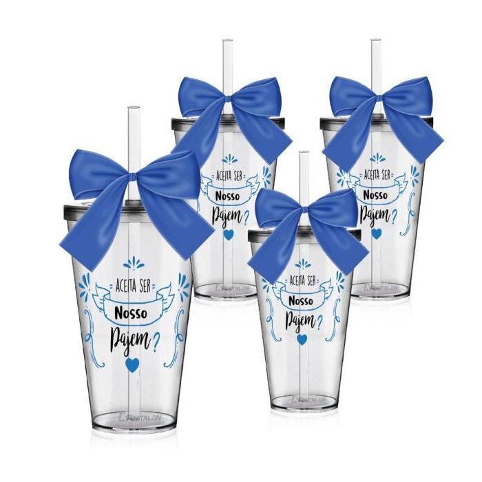 Kit 4 Copos Lembrancinha com Laço Personalizados para Pajem