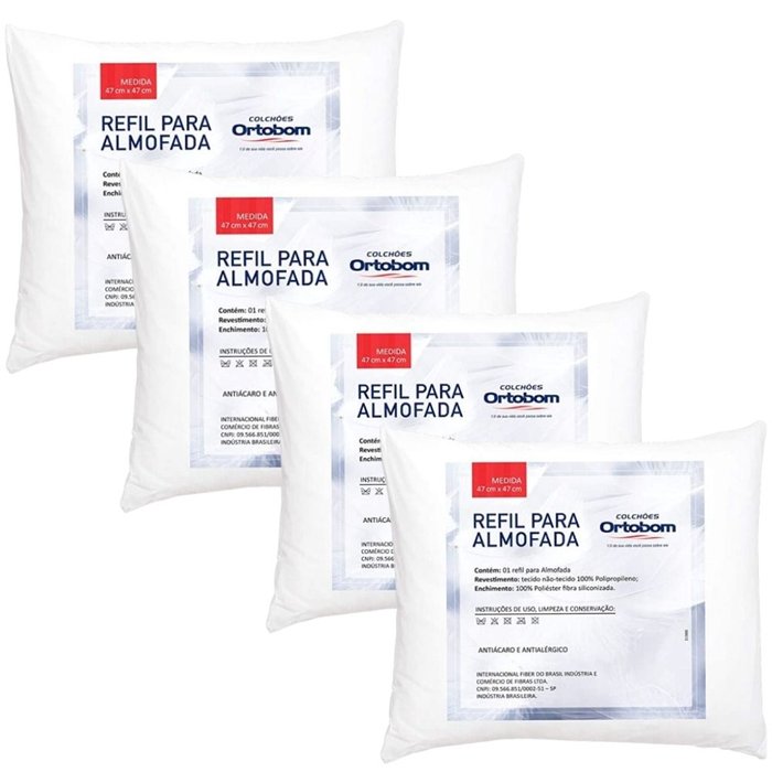 Kit 4 Enchimentos de Almofada Refil Fibra de Poliéster 47x47 Ortobom
