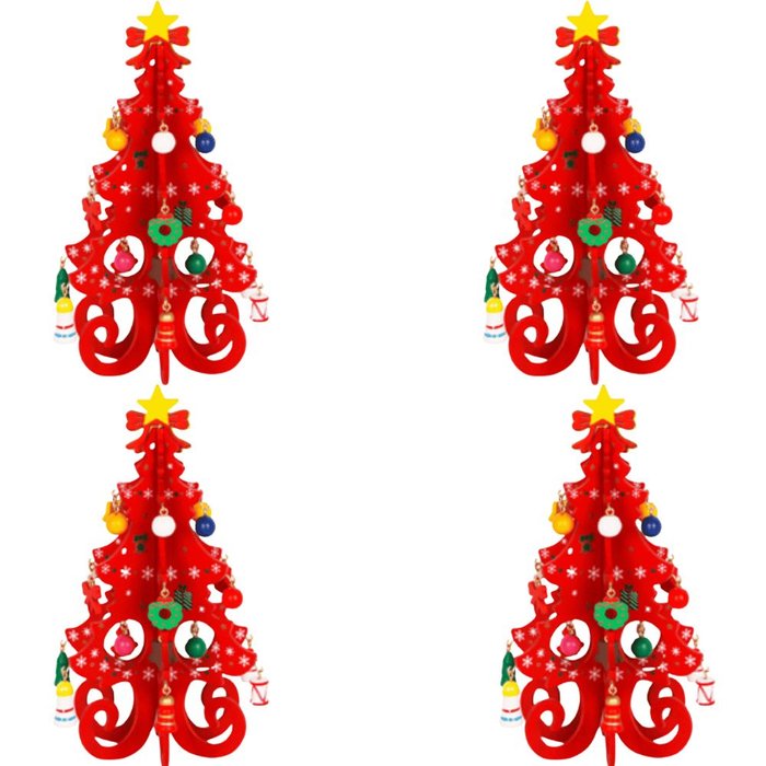 Kit 4 Enfeite de Madeira Árvore de Natal 19x10cm