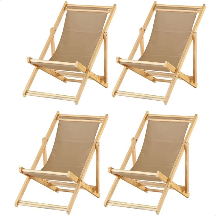 Kit 4 Espreguiçadeiras Preguiçosa Dobrável sem Braço Madeira Maciça com Tecido Bege Natural