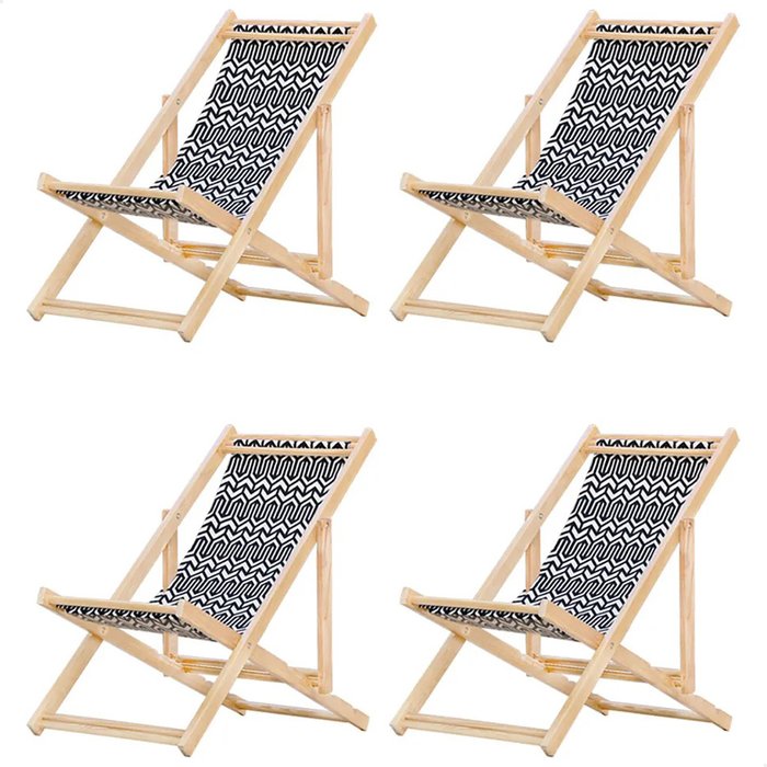 Kit 4 Espreguiçadeiras Preguiçosa Dobrável sem Braço Natural em Madeira Maciça Tecido Retrô