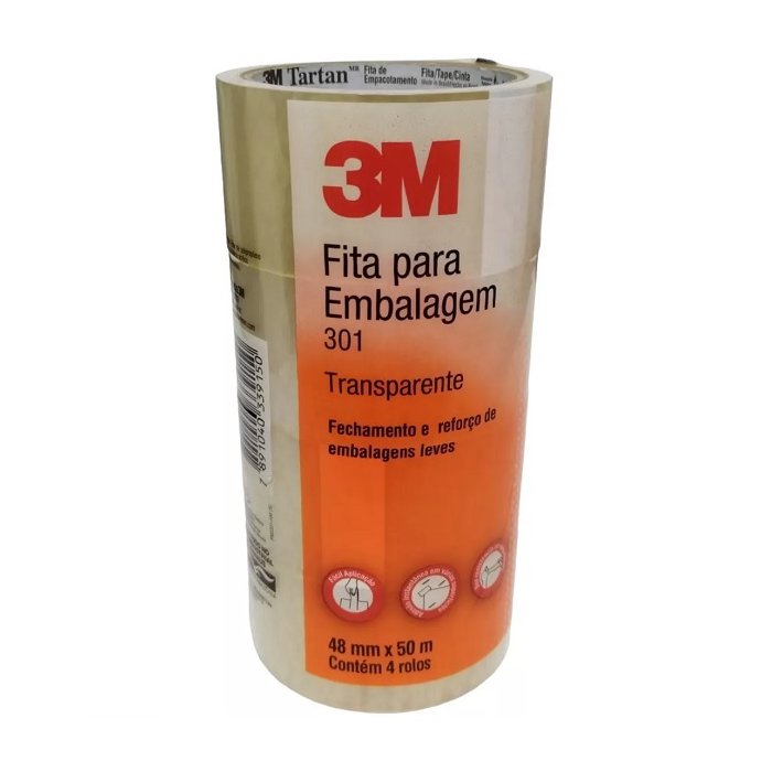 Fita Adesiva Para Embalagem 3M Transparente 48mm x 50 Metros c/ 4 Rolos