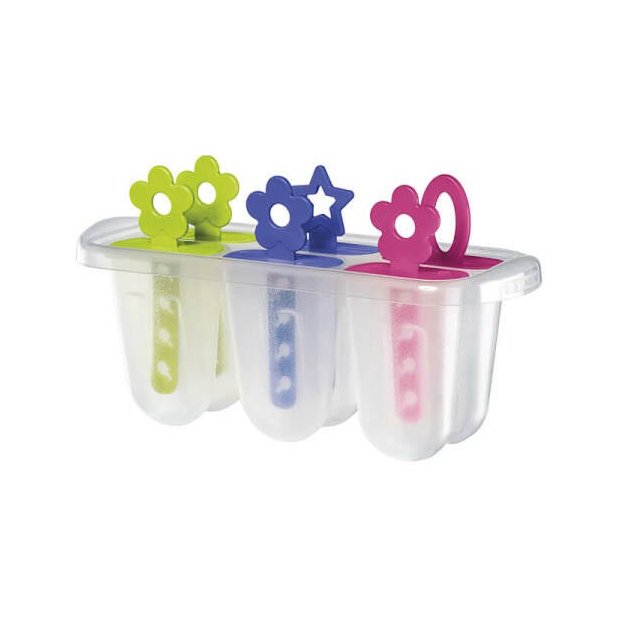Com a Forma para Picolé - Sanremo você pode preparar o seu próprio picolé com a ajuda divertida do seu filho. Esta forma tem capacidade para 6 picolés e é feita de plástico resistente colorido com um formato diferente em cada ponta do palito para deixar o seu picolé ainda mais alegre.