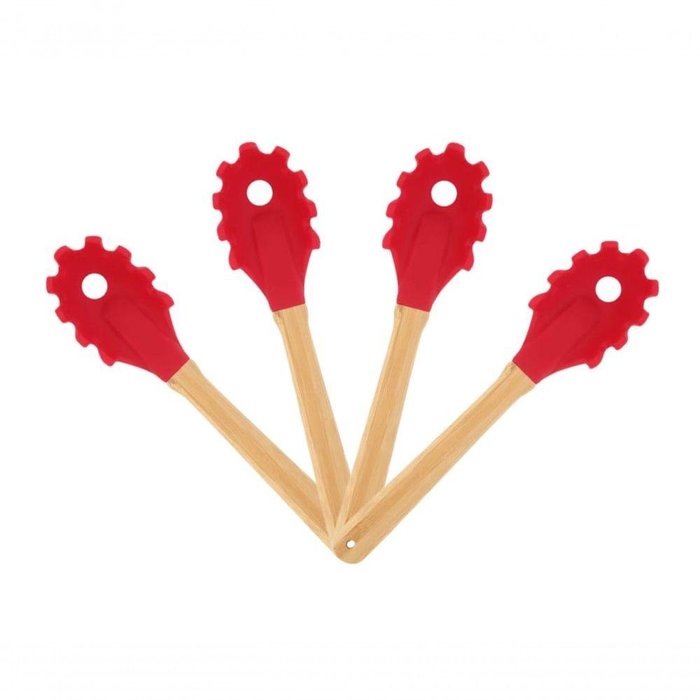 Kit 4 Garfos para Massas de Silicone Cabo de Bamboo Mor Vermelho