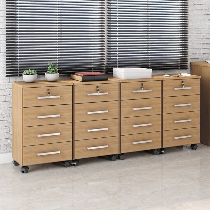 Kit 4 Gaveteiros 4 Gavetas com Rodízios e Chave Gávea Freijó