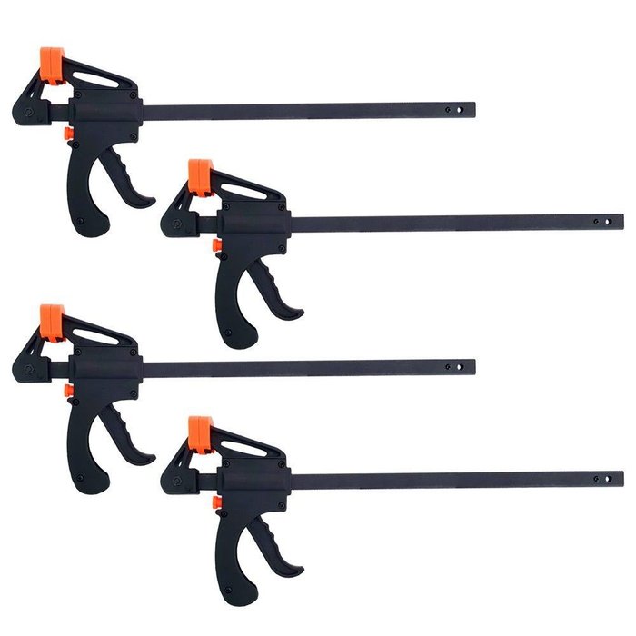 Jogo com 4 Grampos Sargento de Aperto Rápido 300mm (12 Polegadas) para Marceneiro Charbs. Haste metálica com 6mm de espessura e 19mm de largura, mais grossa e pega mais firme que os grampos mais baratos.