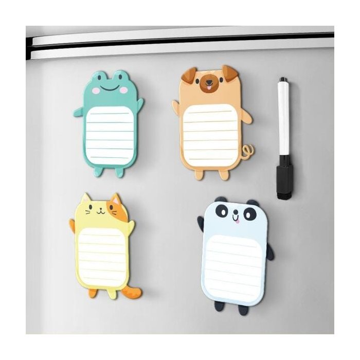 Kit 4 Ímãs De Geladeira Pequenos Animais Anotações Recados Com Caneta Gato Kit 4 Ímãs Little Animals Colorido