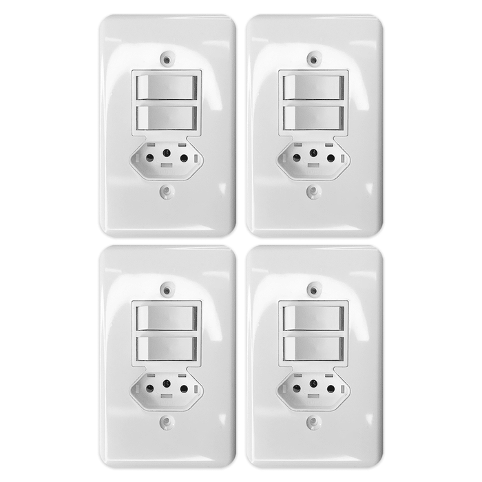Kit 4 Interruptor Simples + Paralelo 6a com Tomada 250v 2p+t 10a Ilumi Cor:branco