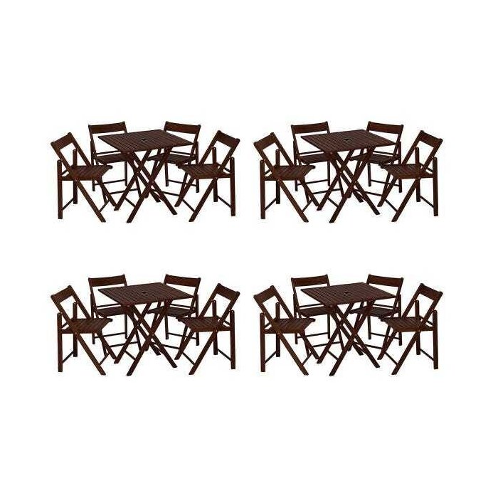 Kit 4 Jogos De Mesas Com 4 Cadeiras De Madeira Dobravel Gourmet Com Suporte Para Ombrelone Tabaco