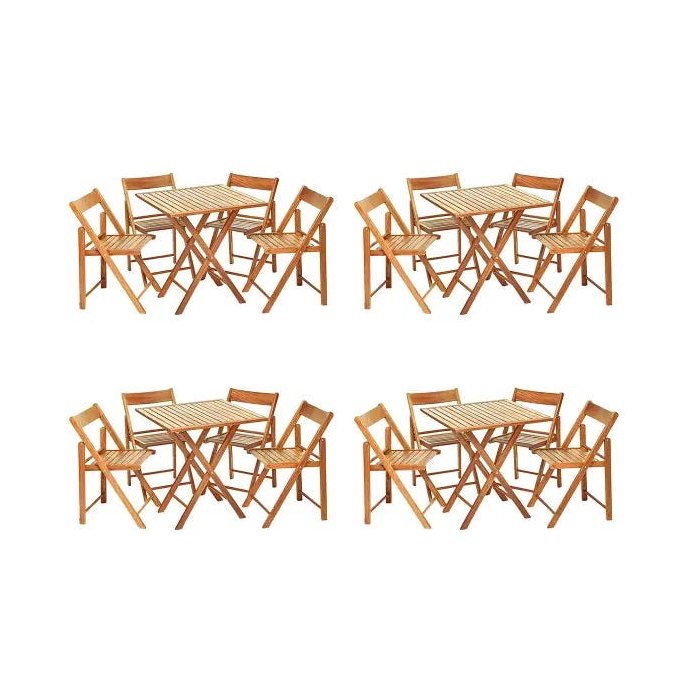 Kit 4 Jogos Mesa com 4 Cadeiras de Madeira Dobrável Gourmet Beer Castanho