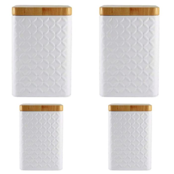 Kit 4 Latas Porta Mantimento Tampa Bambu Açúcar e Café Branco