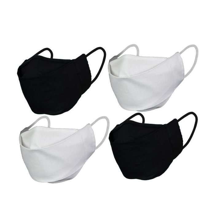 Kit 4 Mascaras 3D de Tecido Lavável com Clipe Nasal 2 Pretas e 2 Brancas