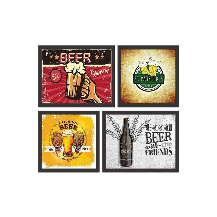 Kit 4 Mini Quadros Beer With The Friends Preto -
