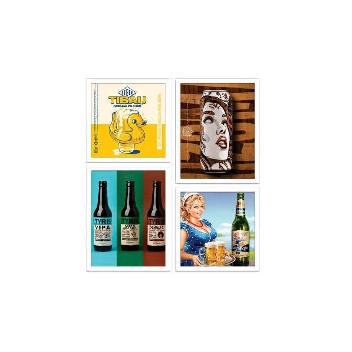 Kit 4 Mini Quadros Cervejas Diferentes Branco -