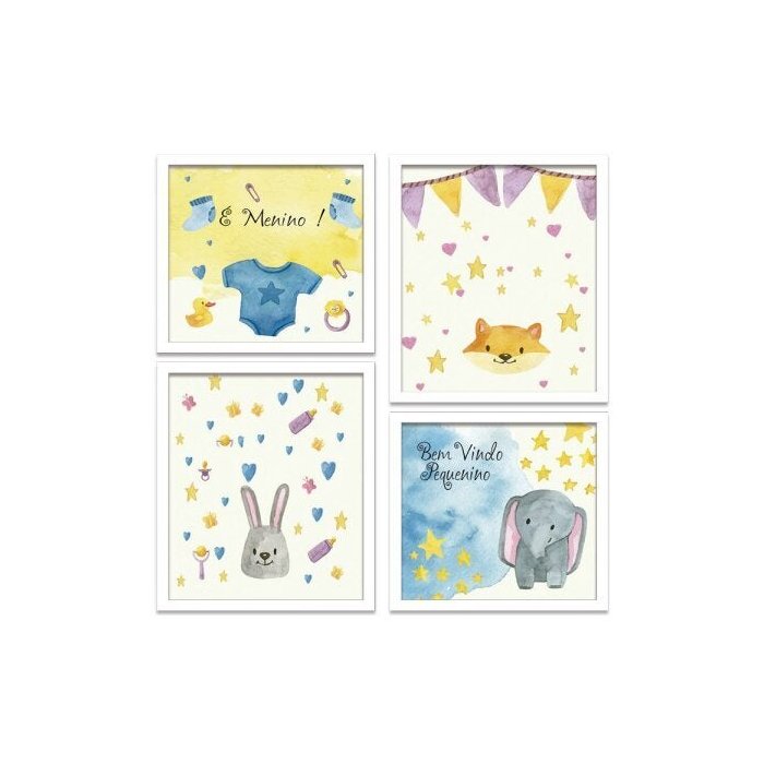 Kit 4 Mini Quadros Infantil É Menino Branco