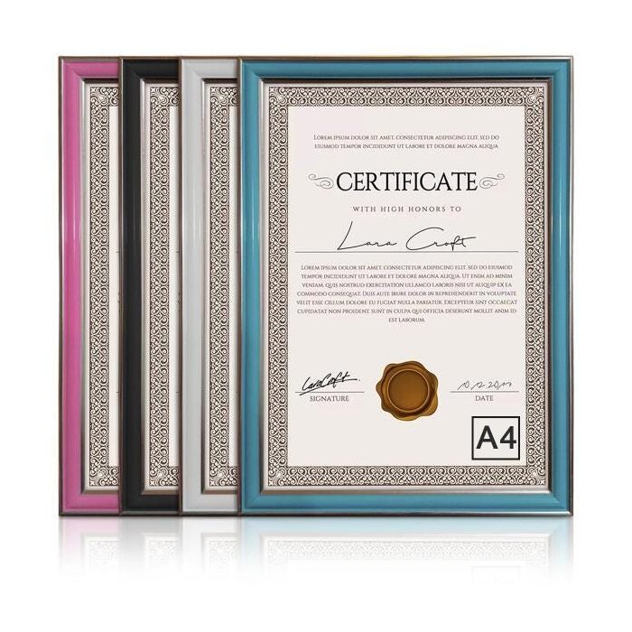 Kit 4 Moldura Quadro Vidro Para Certificado Diploma A4
