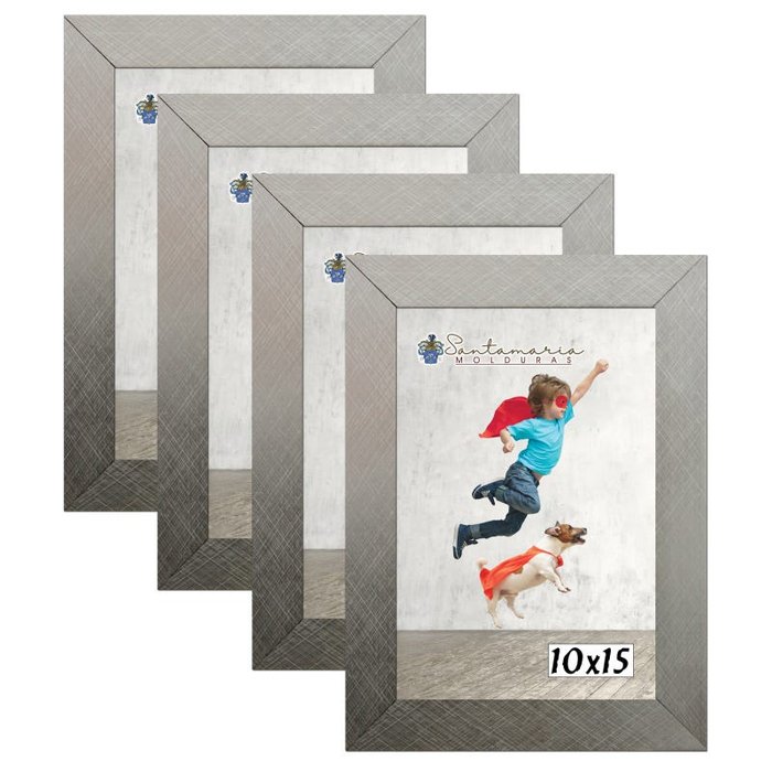 Kit 4 Molduras Porta Retrato 10X15 Prateado prateado