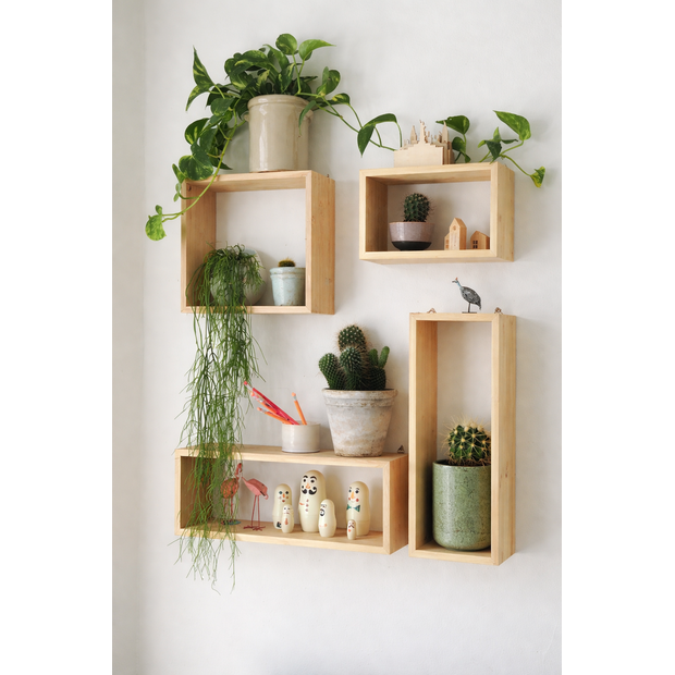 - Organização Inteligente: Quatro peças com tamanhos variados que permitem composições criativas para plantas, livros, velas ou colecionáveis.