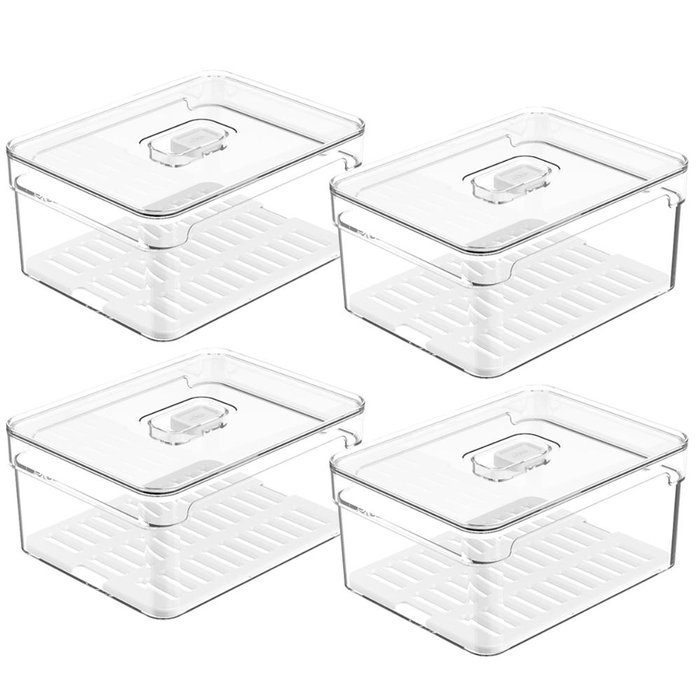 Kit 4 Organizadores de Geladeira com Respiradouros e Drenagem 2,2l Organizadores Clear Fresh