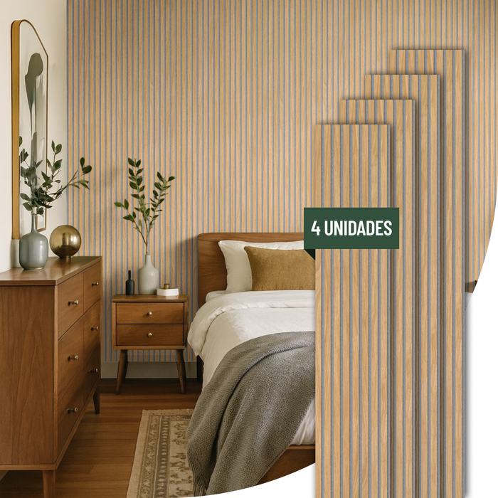 Kit 4 Painel Ikara de Madeira Ripado e Acústico - 270x32cm