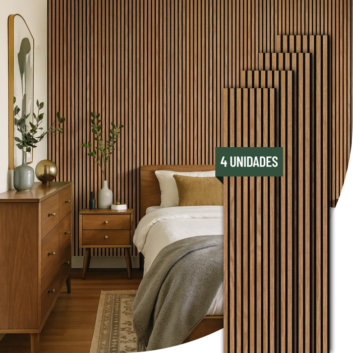 Kit 4 Painel Ikara de Madeira Ripado e Acústico - 270x32cm