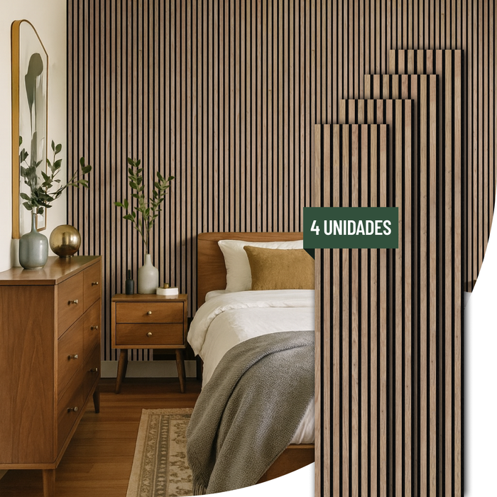 Kit 4 Painel Ikara de Madeira Ripado e Acústico - 270x32cm