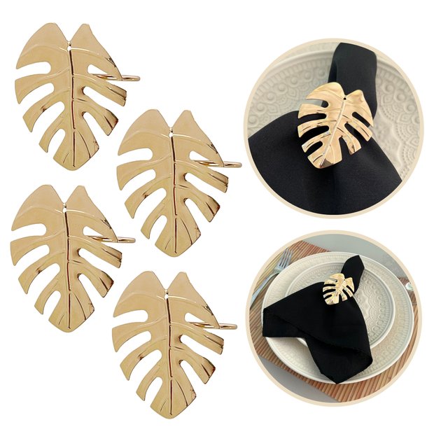 Anel Porta Guardanapo com lindo design em formato de Folha Costela de Adão.